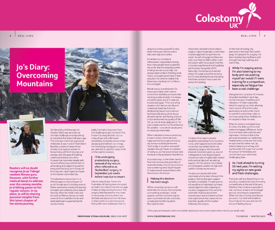 Writing for Colostomy UK’s ‘Tidings’ magazine